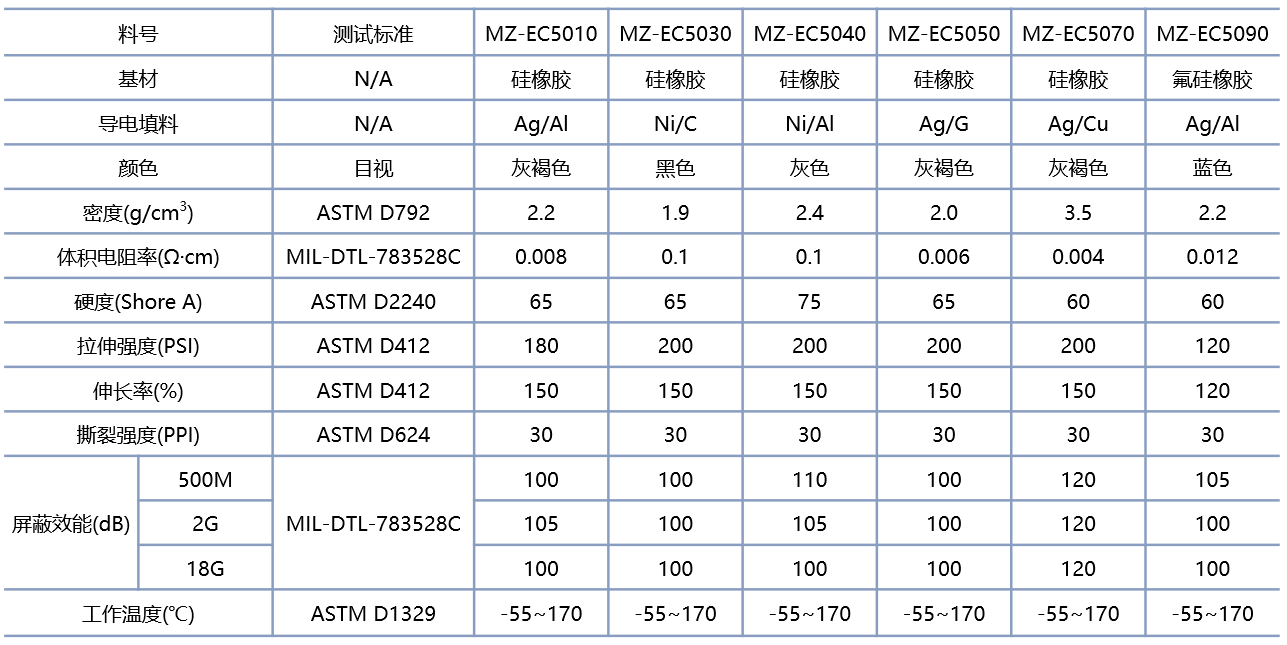 全方位导电橡胶材料性能参数表